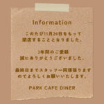 いつもPARK CAFE DINERをご愛顧いただきまして誠にありがとうございます。